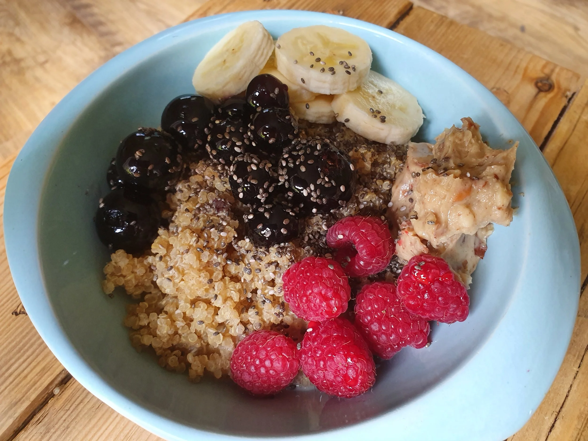 If your looking to add more protein to your diet try swapping your morning porridge oats for quinoa. It’s higher in protein and contains a full amino acid complex making it great for people who follow a plant based diet or vegan way of life. I’ve found soy milk complements the nutty taste of quinoa but you could try hemp or rice milk too. It does take quite a bit longer to cook than conventional oats and you really need to leave around 30 minutes to make this. Of course you can always make a big batch and reheat through the week for a quick morning breakfast.